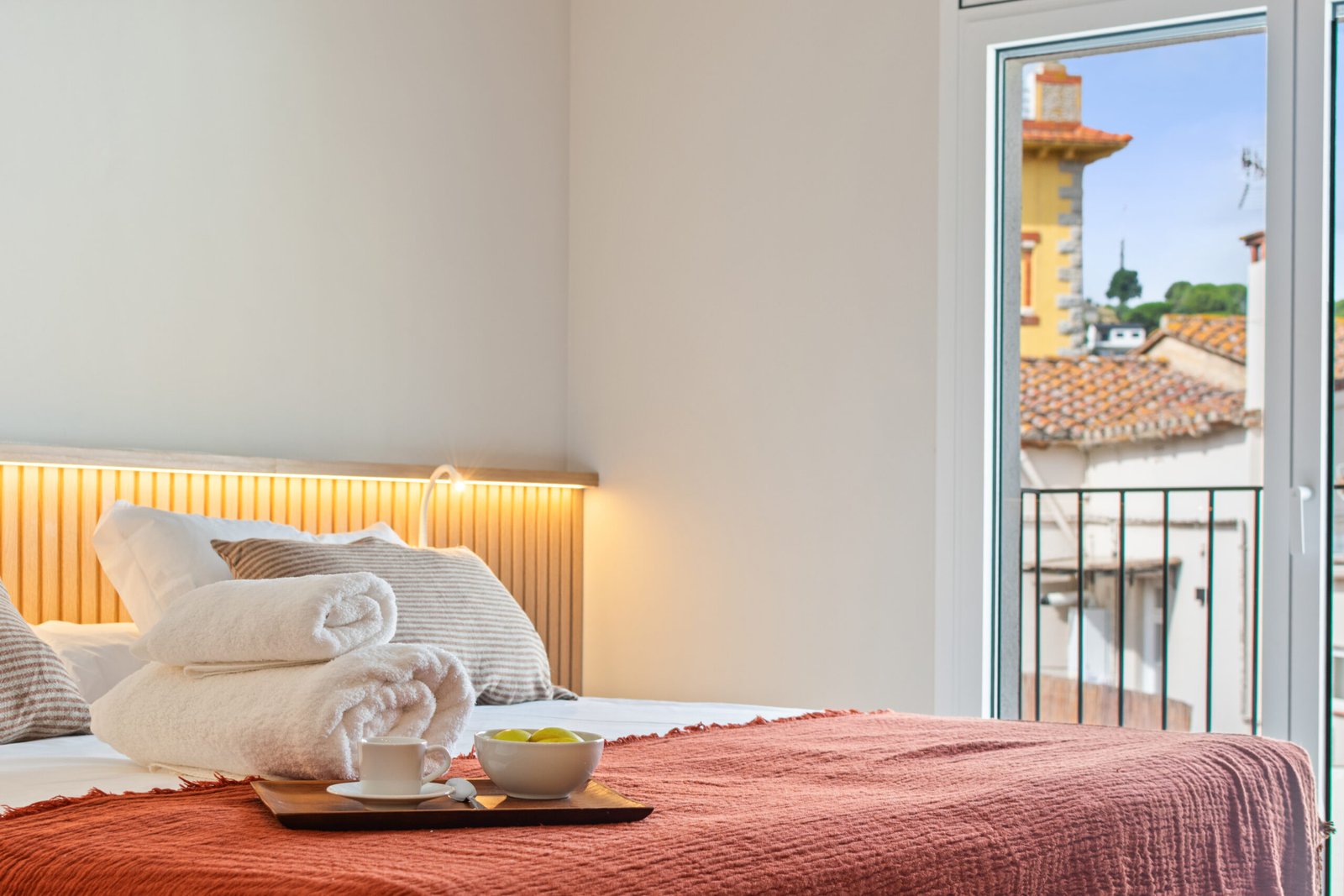 Una estança lluminosa i tranquil·la amb balcó privat que s’obre directament a la pintoresca plaça de l’església. Ideal per a qui busca connectar amb l’encant del poble i gaudir de la vida local des del primer moment. La llum natural i el repicar de les campanes creen una atmosfera càlida i relaxant. Perfecta per desconnectar i sentir-se part de Cabrils.